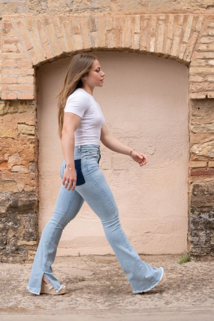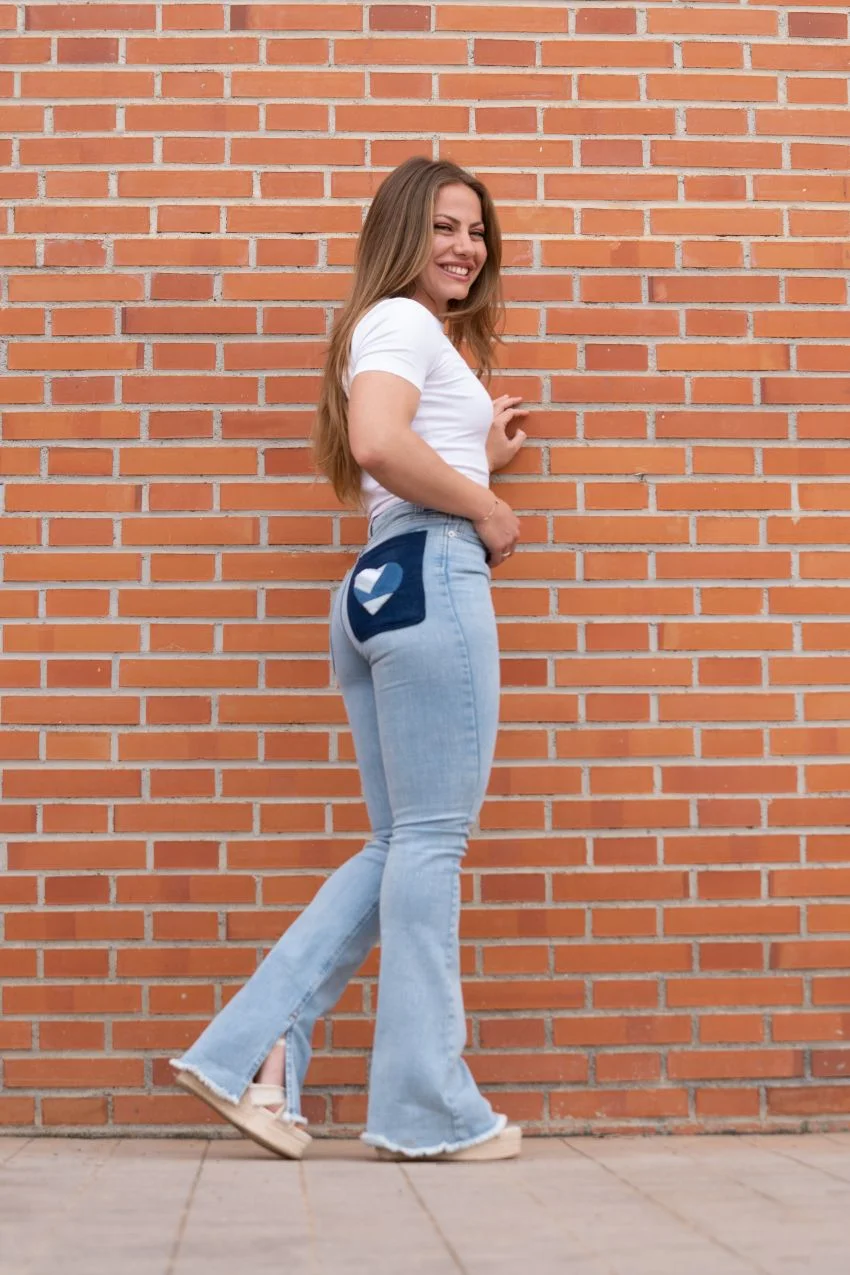 Un pantalón vaquero de campana con bolsillo de corazón con diseño que habla de identidad y carácter. Este vaquero de campana combina una silueta favorecedora con un detalle único: patchwork en forma de corazón en el bolsillo trasero derecho. Realizado de forma 100 % artesanal, desde el patronaje hasta el último acabado, y fabricado en España. No hay dos iguales. Cada pantalón cuenta su propia historia.