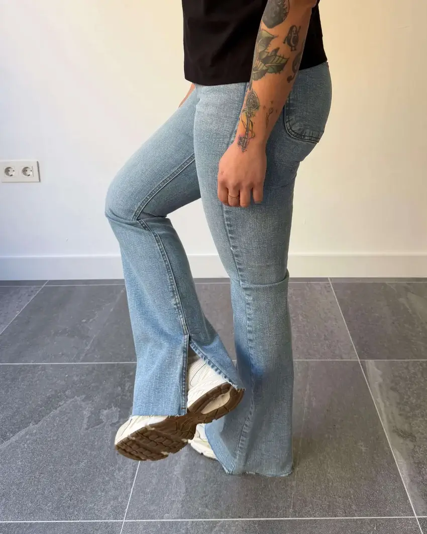 Vaquero de campana diseñado para no pasar desapercibido. Confeccionado de manera totalmente artesanal, este pantalón está creado desde cero y producido íntegramente en España.